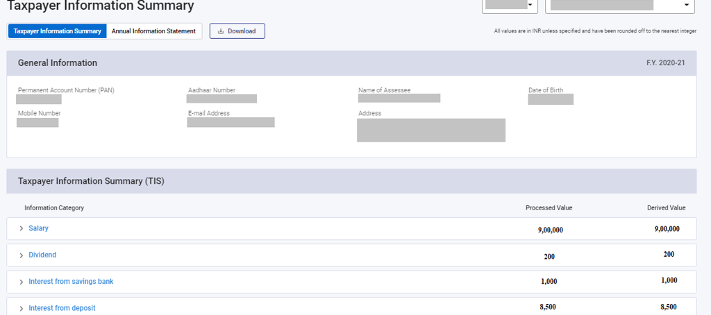 Income Tax form AIS (Annual information system).